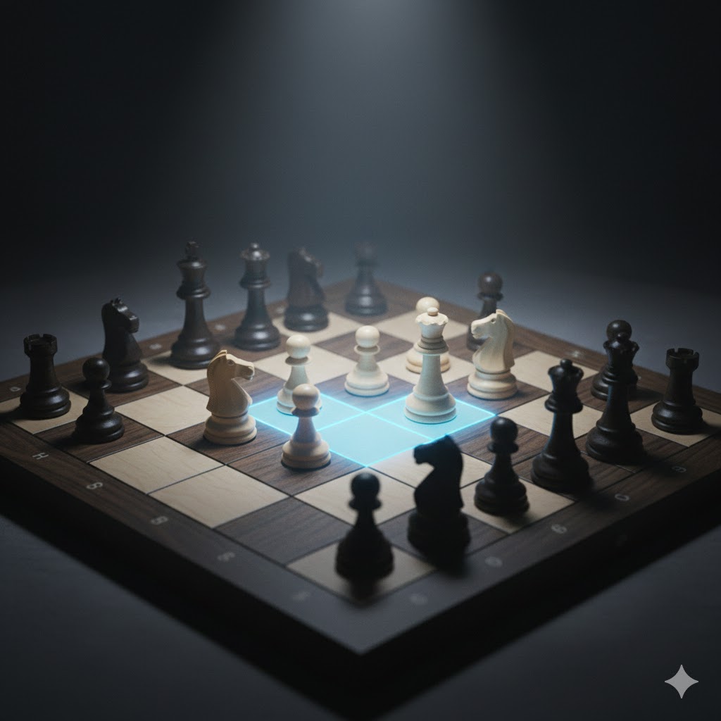 - Mange angrepsvinkler: Kan true flere brikker samtidig fra midten.